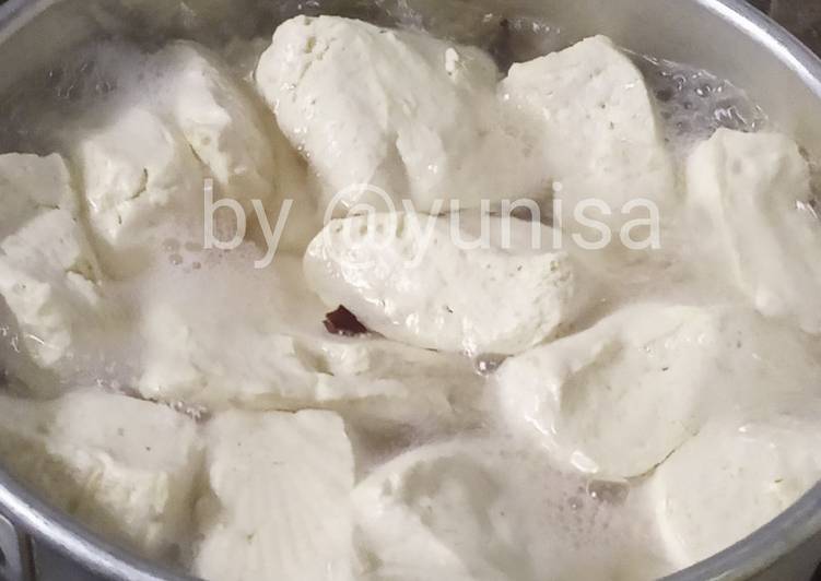 Masak hingga bumbu meresap ke dalam tempe, kemudian masukkan santan kelapa.